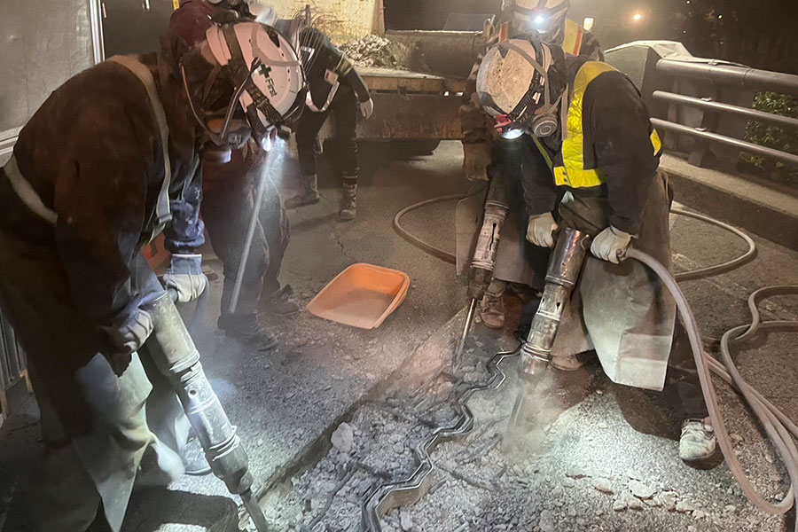 ハンドブレーカーでの大型はつりやエアチッパーでの細かいはつり、電動ハンマーでの作業など、様々な現場に適した方法を選定し、安全に配慮しながら慎重に作業を行います。