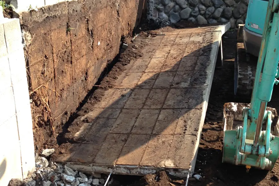 ブロック塀や庭、物置、門柱などの家の周りの構造物を撤去いたします。